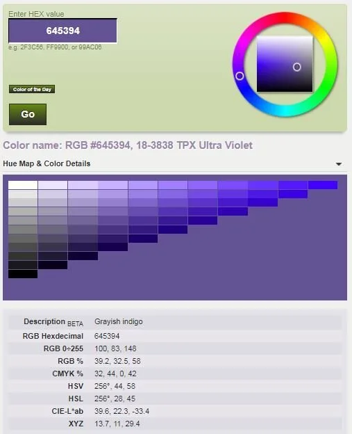 How to match Ultra Violet in RBG, CMYK, and other color models